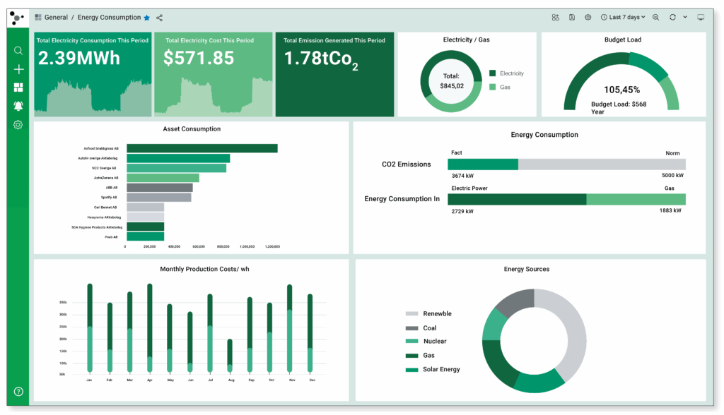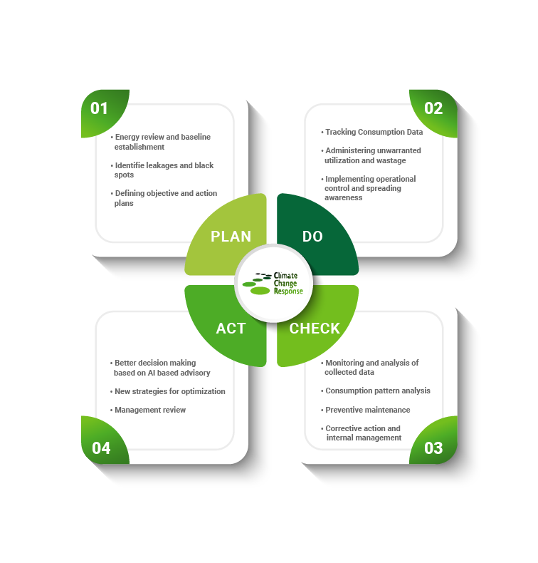 Introduce a proper EnMS with ISO 50001 standard frameworks. Track and assess power consumption details of your entire premises. Identify pain points and prioritize cost-efficient actions. Work on Energy Performance Indicators (EnPIs) and baselines. Improve energy operations via smart alerts, set thresholds and actionable insights.